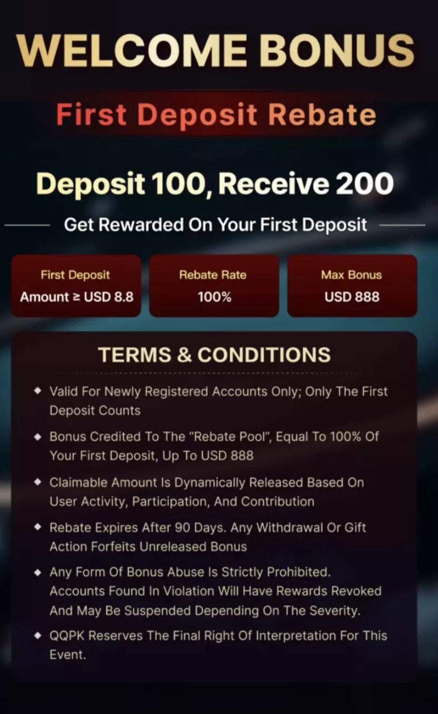 QQPK en France : room asiatique soft avec rakeback attractif. Plateforme mobile & PC (appli Windows officielle), dépôts/retraits 100% autonomes en crypto et 20% de rakeback natif. RakeBoost ajoute un deal personnalisé en plus du RB de base pour booster votre ev sur la room. Bonus dépot jusqu'à 888$.