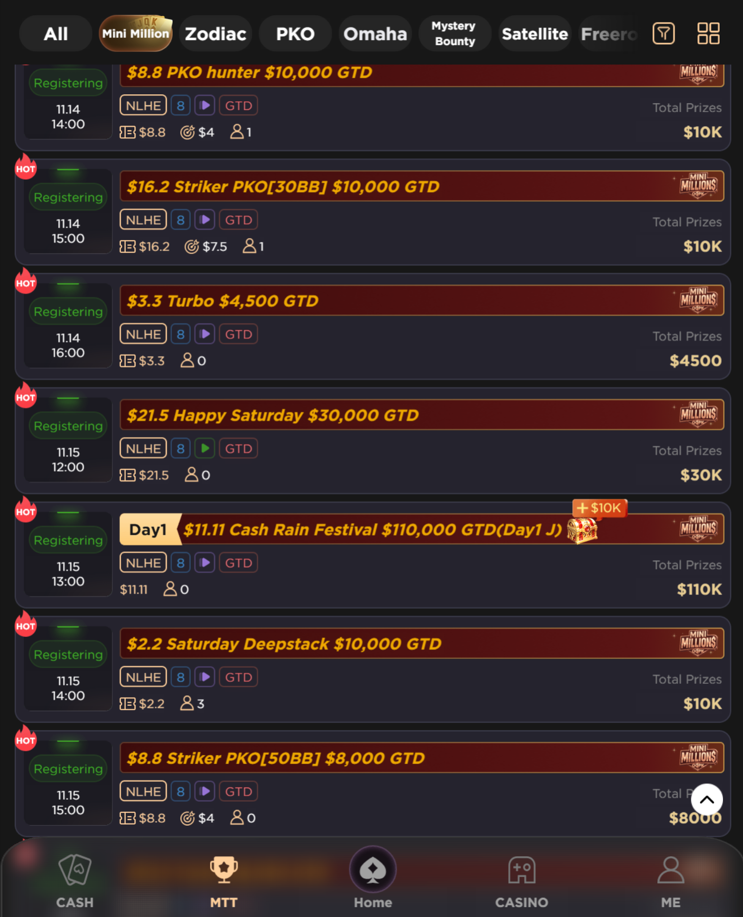 NLH en priorité, Short Deck & All-in or Fold disponibles ; PLO plus discret.